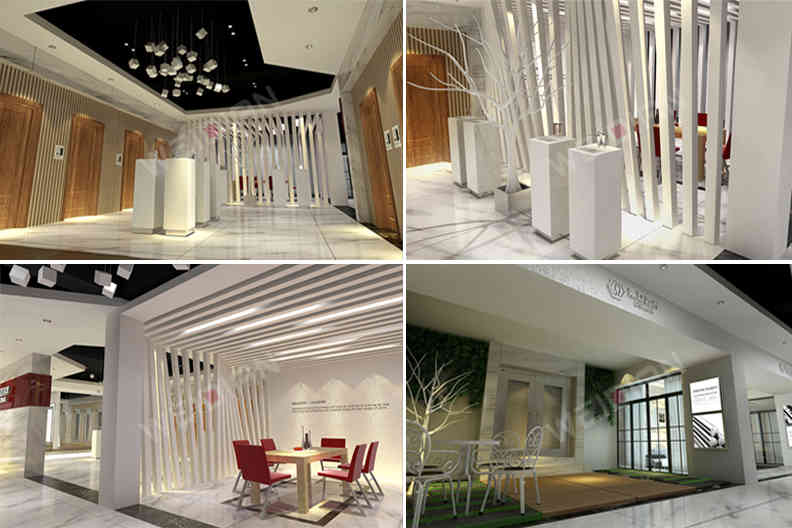整個(gè)展臺(tái)設(shè)計(jì)方案簡(jiǎn)潔大氣,外觀與陳列展示的修飾沒(méi)有過(guò)度消費(fèi),塊面直線條干凈利落,玻璃和鏡面不銹鋼營(yíng)造空間的通透和延伸,簡(jiǎn)約質(zhì)樸的材料做出優(yōu)雅和品味,更能適應(yīng)現(xiàn)代未來(lái)高效快捷的特點(diǎn)。合理明智的選材及完美的運(yùn)用使整體看起來(lái)極具品質(zhì)感,設(shè)計(jì)師還注重生態(tài)的營(yíng)造,綠化穿梭連貫活潑