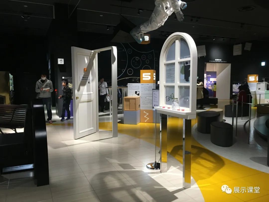 這個(gè)展區(qū)通過(guò)設(shè)置任意門(mén)、窗戶、頂面懸掛宇航員模型,讓空間變得更加有趣,充滿想象。還可以是圖版+氛圍營(yíng)造,將展廳想要展示的內(nèi)容,融入到整個(gè)展廳設(shè)計(jì)空間場(chǎng)景布置中。